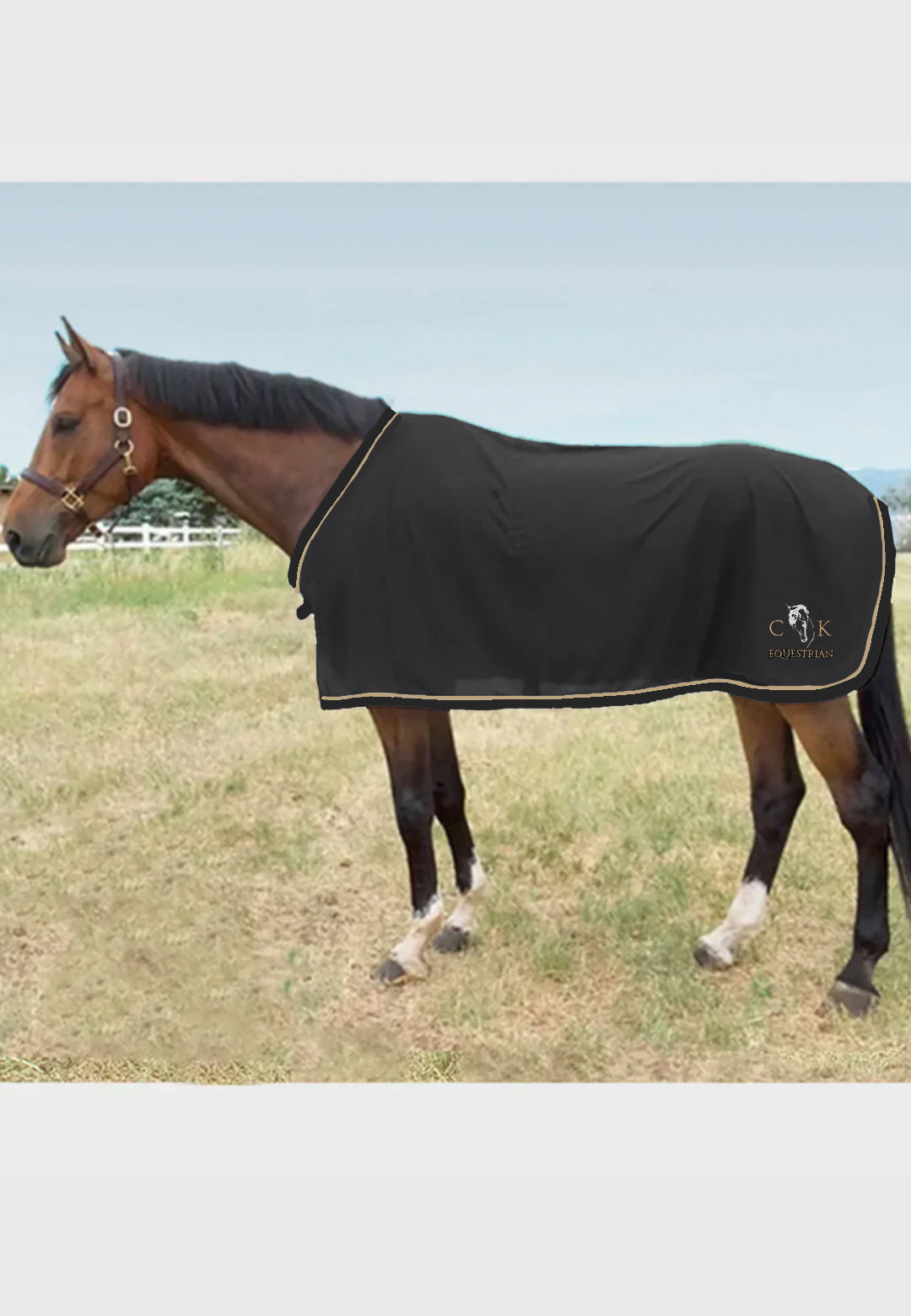 CK Equestrian's Scrim Sheet in black, with black trim, and tan piping.