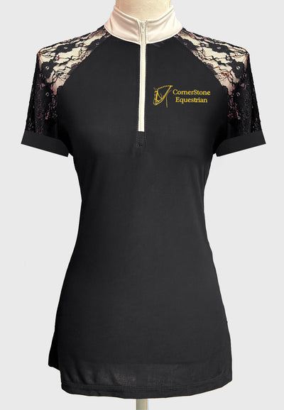 Cornerstone Equestrian Long OR Short Sleeve Black Show Shirt with Lace Sleeves, Ladies + Youth
