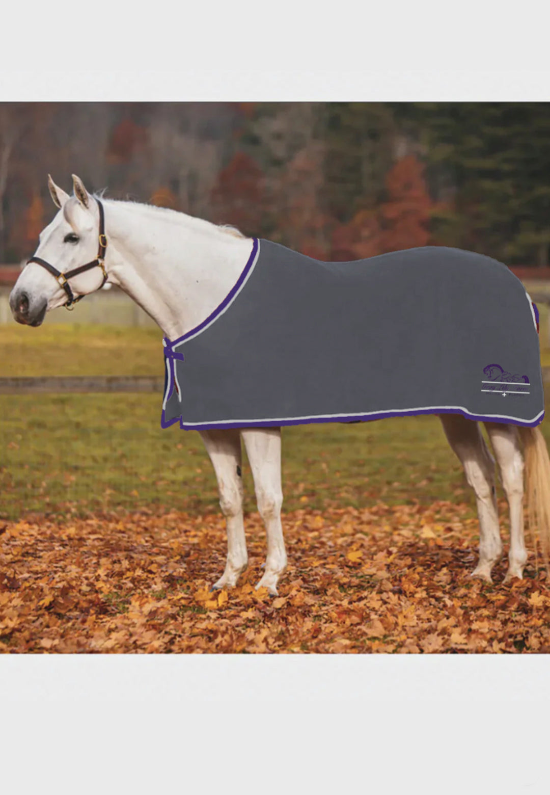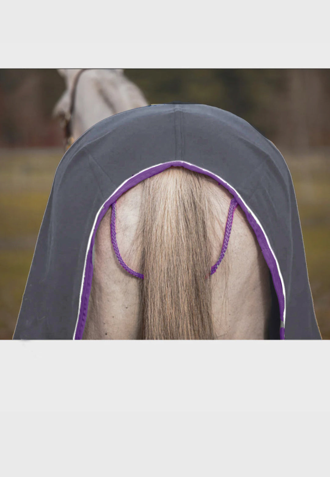 *Price includes embroidered logo on back left corner in light grey + purple, optional horse or rider name for an additional $8 charge. Braided tail cord included (example 2nd image)but optional fancy hip ornament (see 3rd image) available for a $25 upgrade. Image shows suggested placement and size - actual product may differ slightly. We ask for 1 month for custom orders.