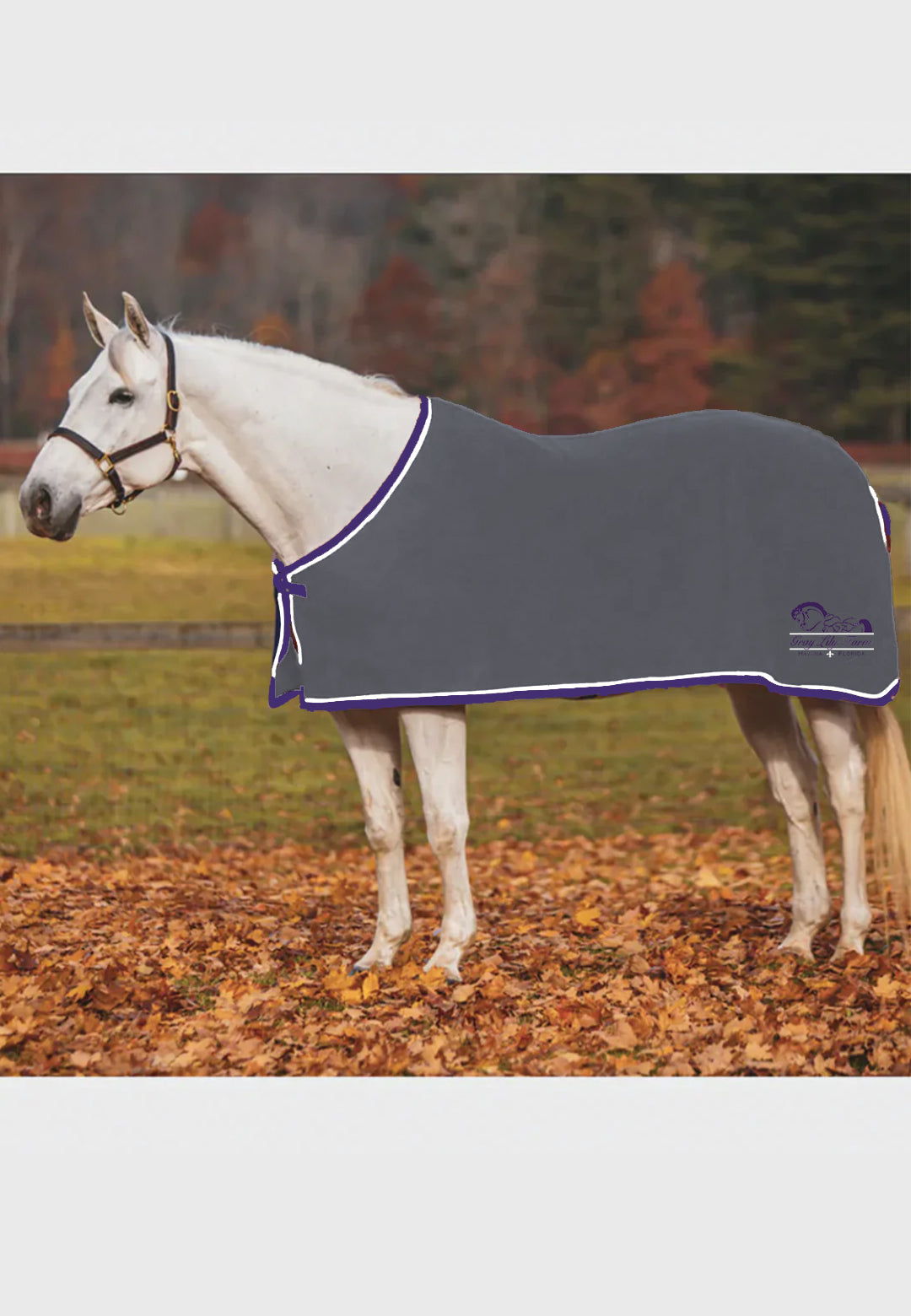 *Price includes embroidered logo on back left corner in white + purple, optional horse or rider name for an additional $8 charge. Braided tail cord included but optional fancy hip ornament (see 3rd image) available for a $25 upgrade. Image shows suggested placement and size - actual product may differ slightly. We ask for 1 month for custom orders.