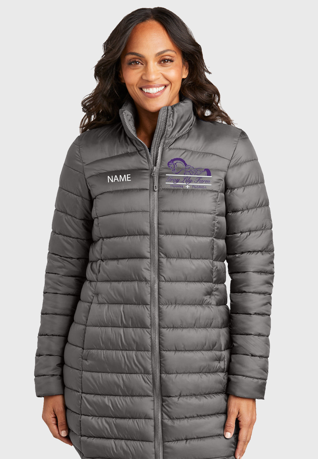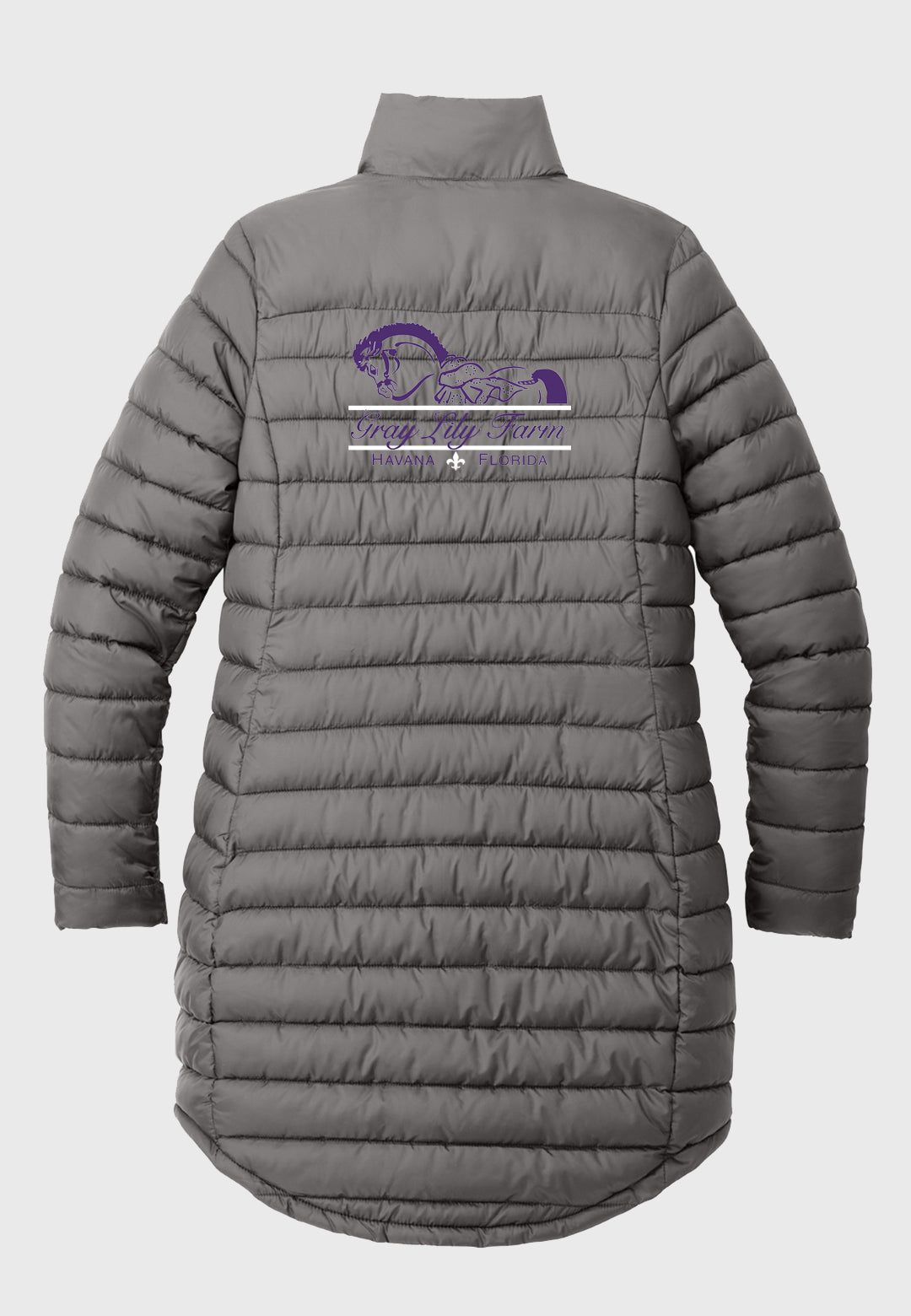 With horizonal baffles, a slight sheen and insulation that simulates down feathers, this is the newest puffy on the horizon. A water-resistant finish helps keep light rain out.