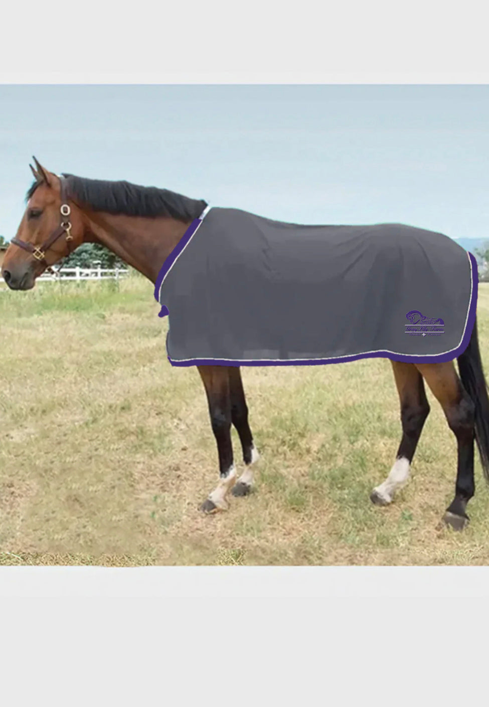 *Price includes embroidered logo on back left corner in light grey + purple. Optional horse or rider name below for an additional $8 charge. (Actual size and placement may differ slightly from image.) We ask for 1 month to complete custom orders.