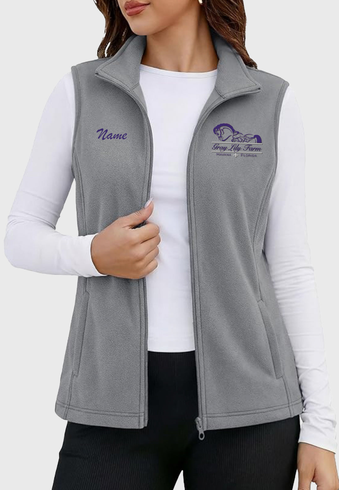 *Price includes logo on left chest in white horse/verbiage + gray lines/fleur de lis (purple), light grey lines/fleur de lis + purple horse/verbiage (on grey + black) We ask for one month to complete custom orders.