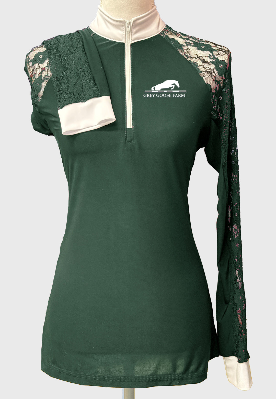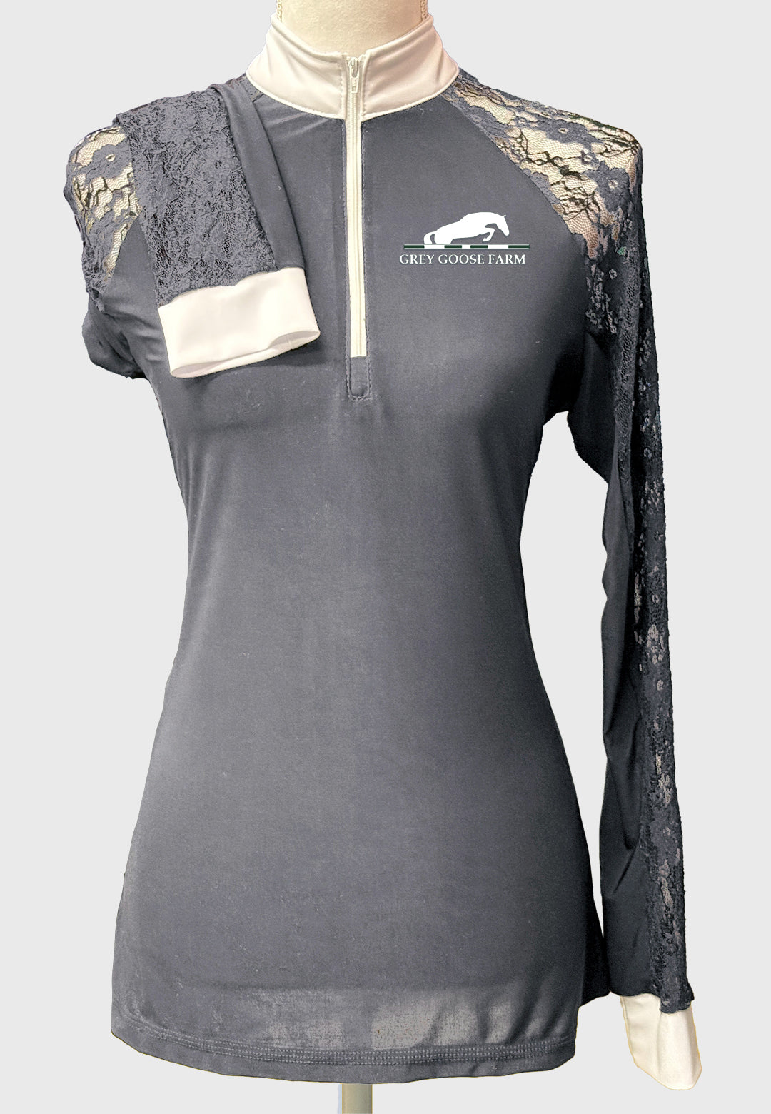Grey goose Farm Long Sleeve Show Shirt with Lace Sleeves, Ladies + Youth