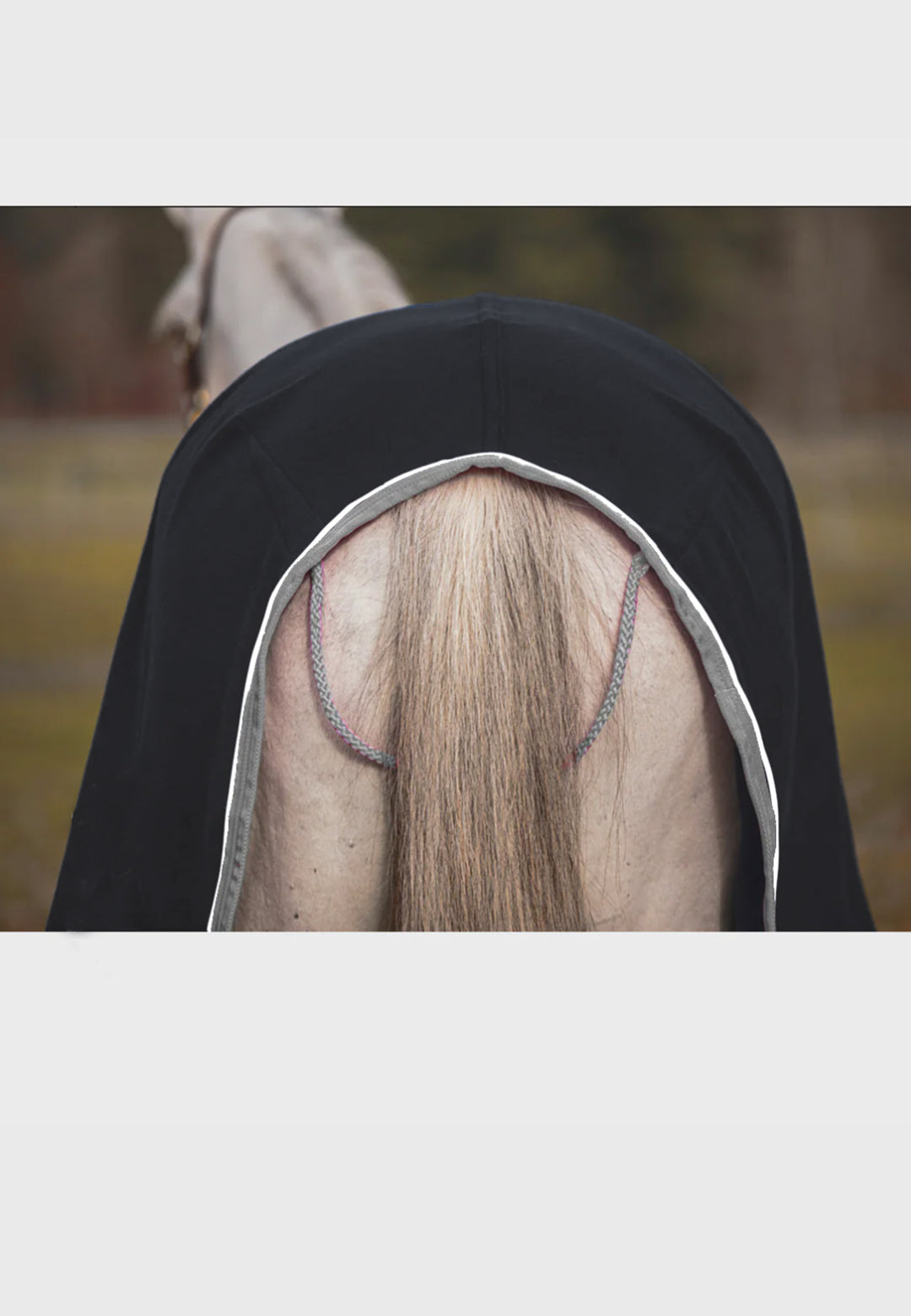 *Price includes embroidered logo on back left corner in white, optional horse or rider name for an additional $8 charge. Braided tail cord included but optional fancy hip ornament (see green image) available for a $25 upgrade. Image shows suggested placement and size - actual product may differ slightly. We ask for 1 month for custom orders.