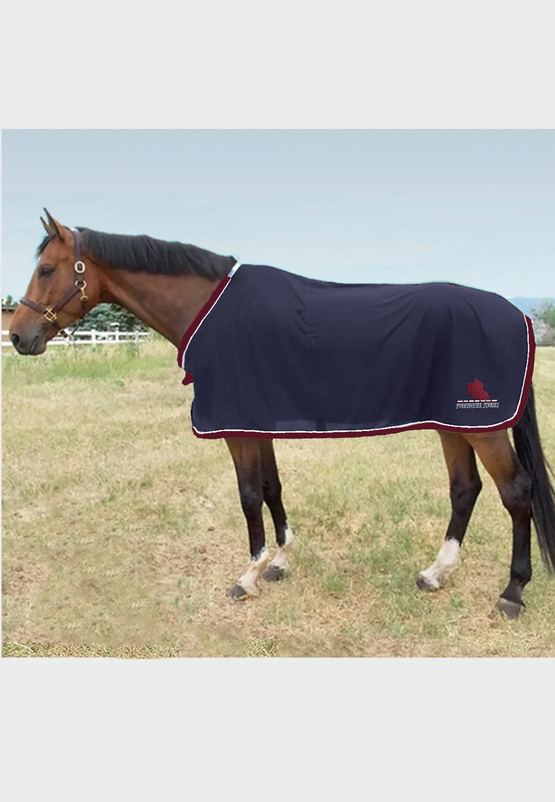 Sweetwater Stables' Scrim Sheet in navy, with maroon trim, and white piping.