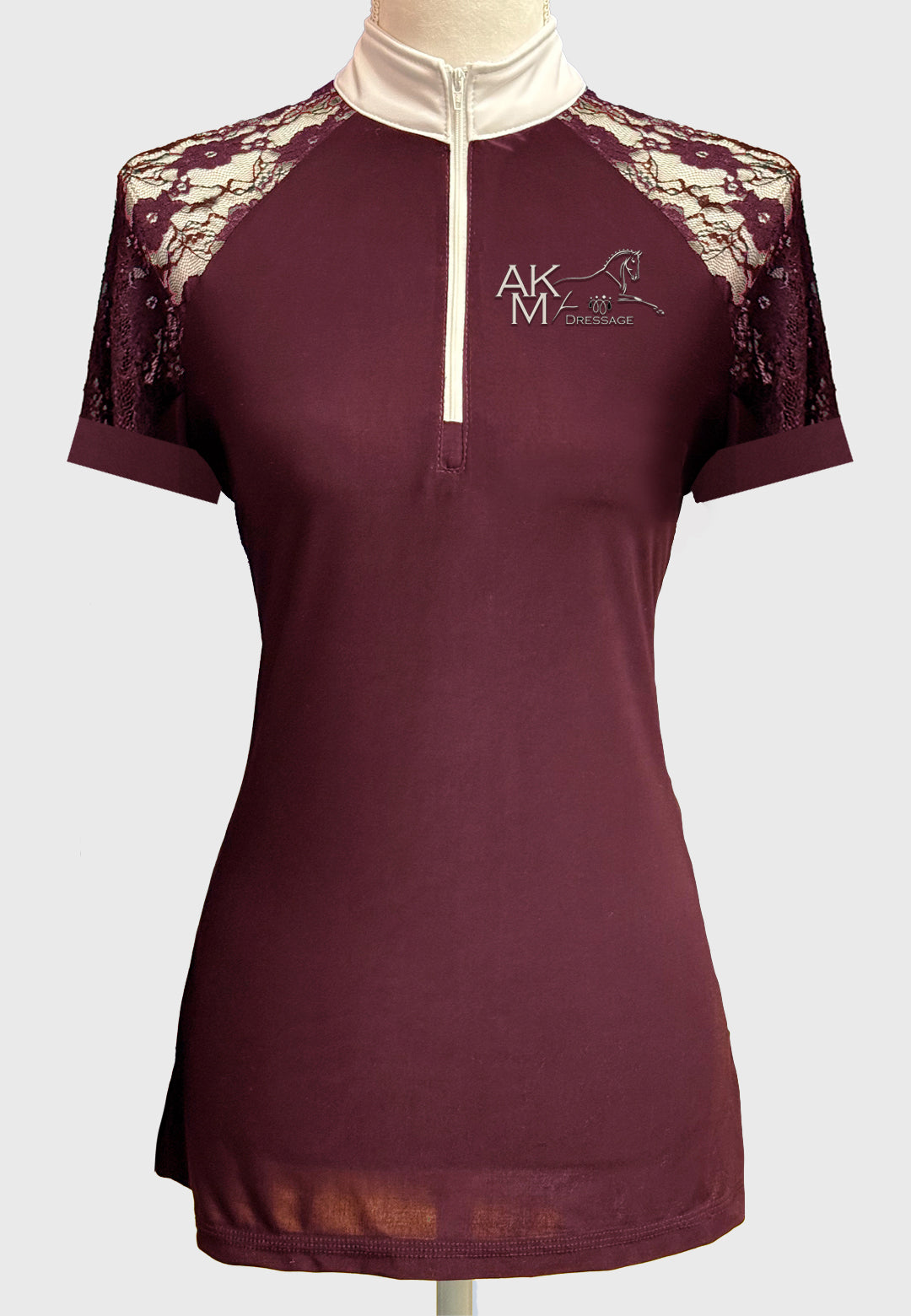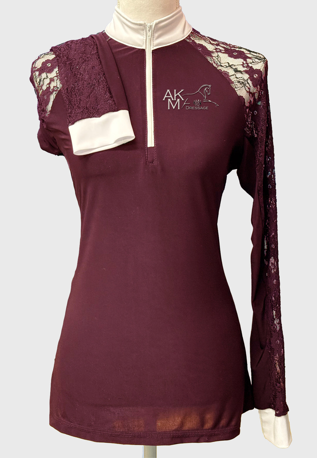 Our newest custom shirt design! Lovely show shirt with full lace sleeves, white zipper, collar and cuffs.