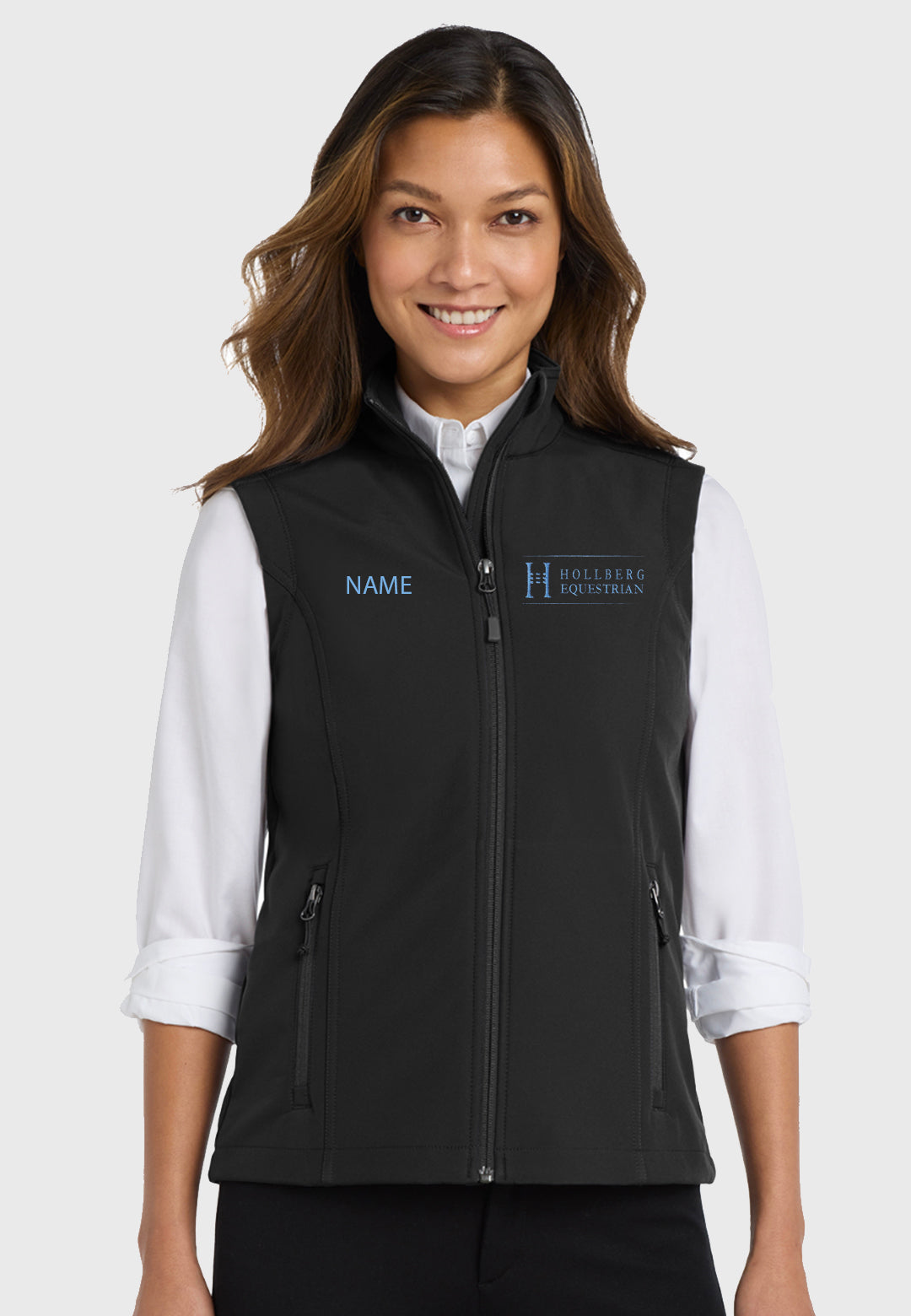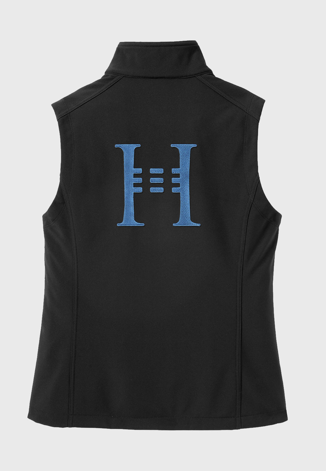 Keep your core warm and protected from the elements in this versatile vest that's easy on the budget. Navy vest with white embroidery.